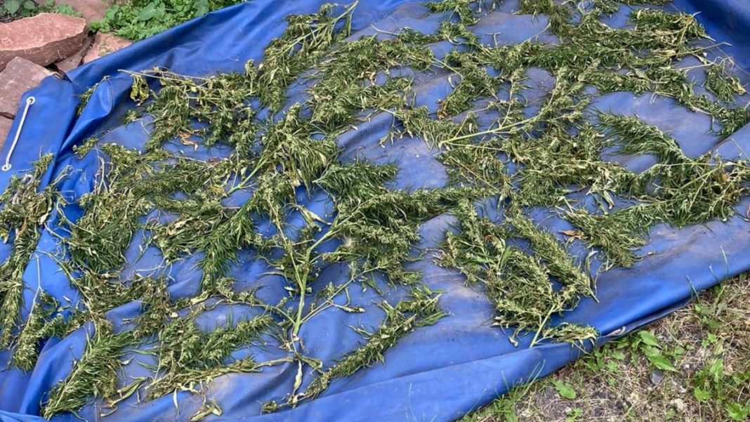 В ходе обыска служебная собака указала на вещество растительного происхождения в бане у входа, за домом, у теплицы, а также хранящееся в банке в доме. Согласно справке эксперта, общий вес изъятой марихуаны составил 1036 граммов.