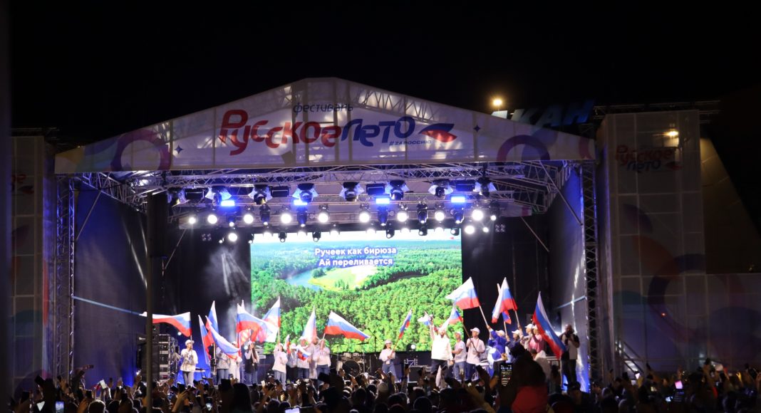 – Привет, Абакан! Привет, «Русское лето»! Сегодня мы проводим классный, яркий, самобытный фестиваль «За Россию!», за наших! Этот фестиваль проводится по всей нашей большой стране! Главная цель фестиваля – сплотить и объединить всех нас, это нам так сейчас необходимо, и поддержать наших ребят, кто воюет там, где решается судьба России. Сегодня на рубежах России идёт трудный бой за настоящее и будущее нашей страны, за то, чтобы мы жили в свободной стране, чтобы мы любили, создавали свои семьи, растили своих детей. Растили сильных духом, настоящих богатырей земли Русской. За то, чтобы мы стояли плечом к плечу за русское слово, за русскую культуру, за русский мир. За то, чтобы мы не посрамили дедов и прадедов, воевавших за нашу Отчизну.