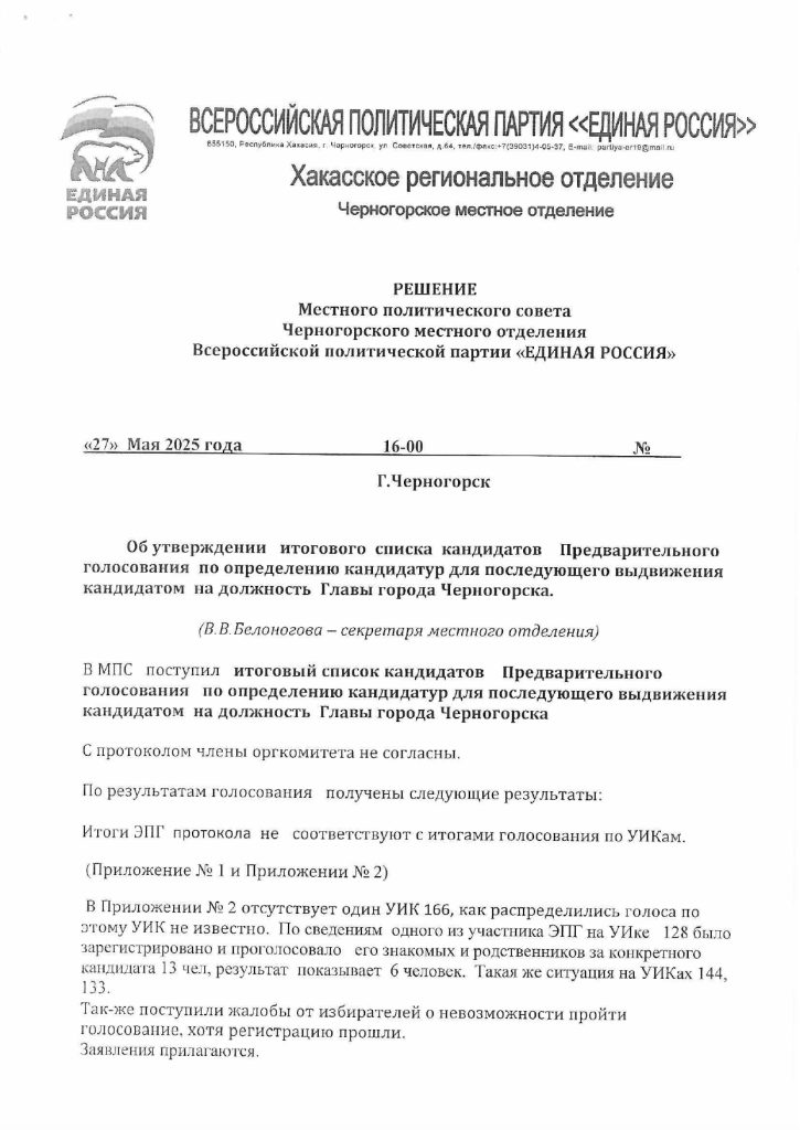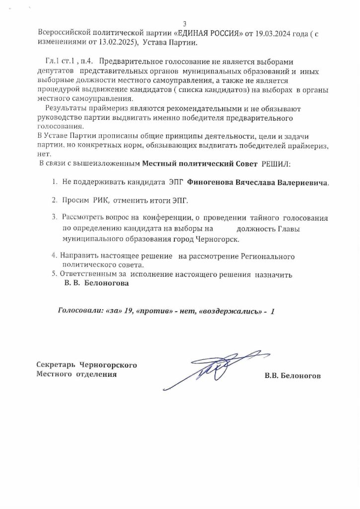 Учитывая федеральный интерес к этим выборам, явно наносится урон партии в целом. Оставим за скобками взаимоотношения Финогенова и Белоногова, уверены, что в ходе выборов это выплеснется в публичное пространство ещё не один раз. Отметим пока лишь факт, зафиксированный в официальном протоколе одной из ячеек ЕР: механизм праймериз партии «Единая Россия» работает некорректно — настолько, что результаты голосования просят отменить.