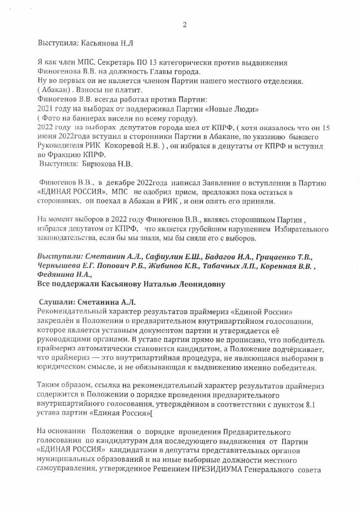 Вчера стало известно, что победивший в Черногорске на праймериз по определению кандидата на выборы главы города Вячеслав Финогенов, не совсем еще победивший. Несмотря на то, что на официальном сайте регионального ЕР висит публикация о его победе, черногорское местное отделение приняло решение отменить результаты предварительного голосования.