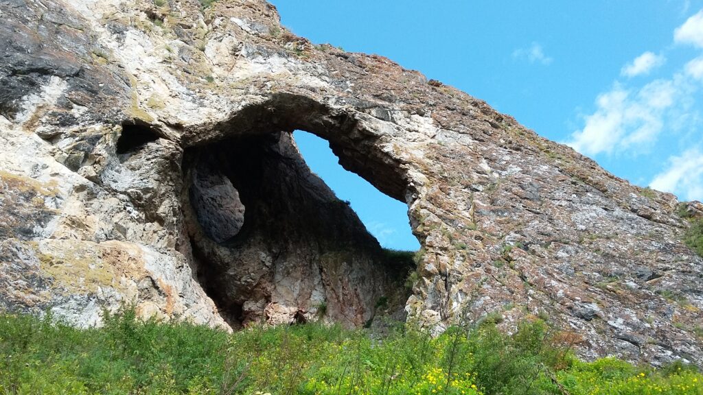 Маршрут завершается у грота «Трёхглазка», напоминающего лежащий на горе череп, с тремя входами, которые, по поверьям, ведут в параллельные миры, мир яви, мир прави и мир нави.