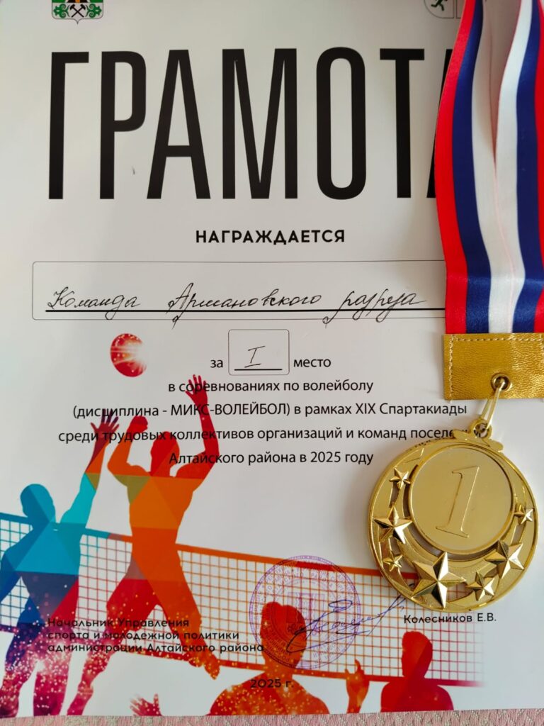 Сегодня команда разреза вновь доказала свою силу и профессионализм, завоевав первое место в соревнованиях по микс-волейболу в рамках 19 Спартакиады среди трудовых коллективов Алтайского района.