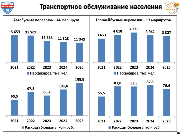 Услуги общественного транспорта в республиканской столице – одно из направлений, на котором подробно остановился градоначальник Алексей Лемин в отчёте о деятельности городской администрации за 2025 год на состоявшейся 24 марта очередной сессии Совета депутатов города Абакана. По данным с 2022 года, в Абакане изменились структура, сезонность городских автобусных маршрутов, а также пассажиропоток как на автобусных, так и на троллейбусных маршрутах.