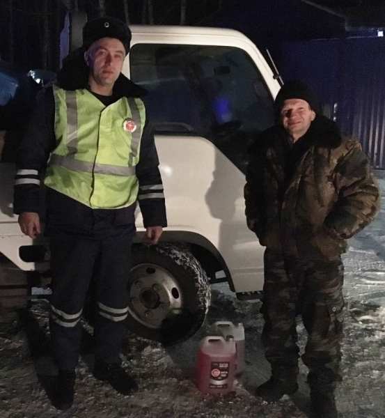 Экипаж ДПС в составе лейтенанта Александра Толстикова и старшего сержанта Максима Евдокимова двигался по трассе. Полицейские увидели, что на обочине стоит грузовик с неработающим двигателем, и остановились. Водитель рассказал, что машина остановилась из-за неисправности систем охлаждение, а самостоятельно завести автомобиль мужчина не может. Поэтому он стоит там несколько часов.